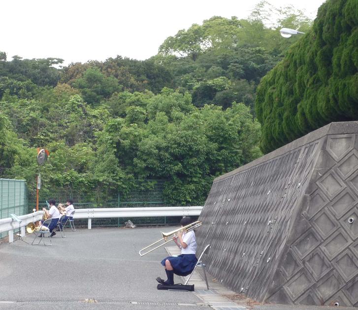 香住高のブラスバンドの皆さんは森に向かって練習してあります。