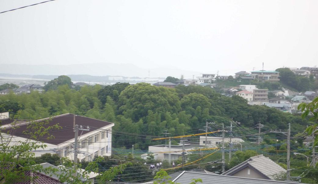 (現在の森と高校すばらしい光景です。高校の横に43.5mの大きなコン クリートの壁を作る発想には唖然とするしかないのか)