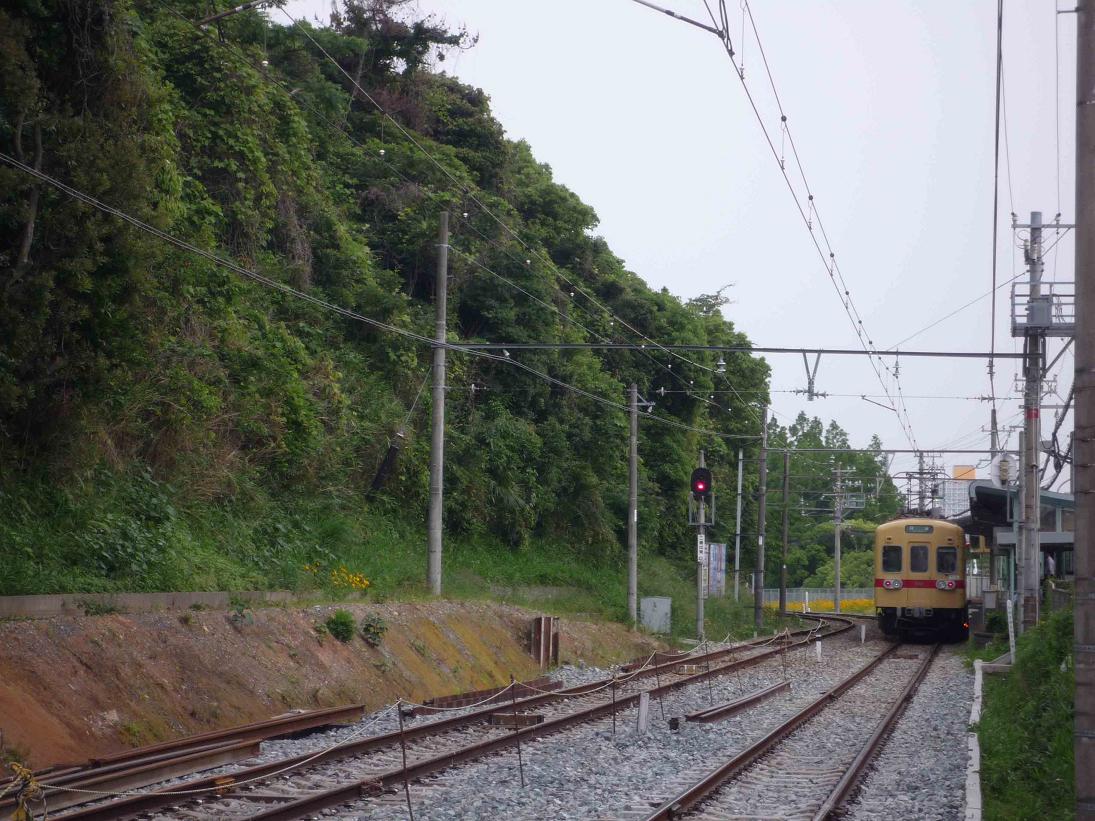 (線路横の素晴しいみどりのかべ。ここが全部高さ8mのコンクリート壁になるのか。電信柱より高いでしょう?考えただけでも暑苦しそう 温暖化....)