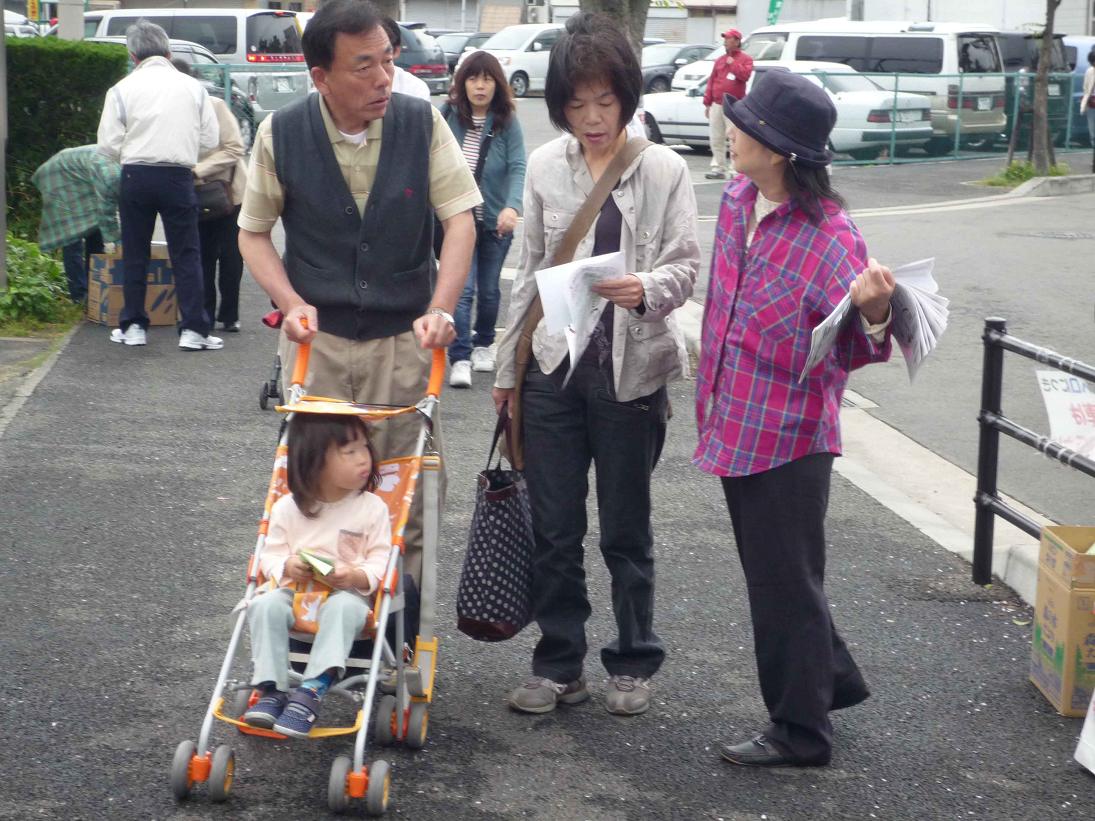 5月5日 香椎花園正門前で「香椎花園前駅の森を守る会」の街頭活動にお付き合いしました。こどもの日にちなんで、お子さんには「みどりを大切に 森は生きてるよ」と書かれた短冊のついたオモチャを大人の方にはビラを配ってありました。